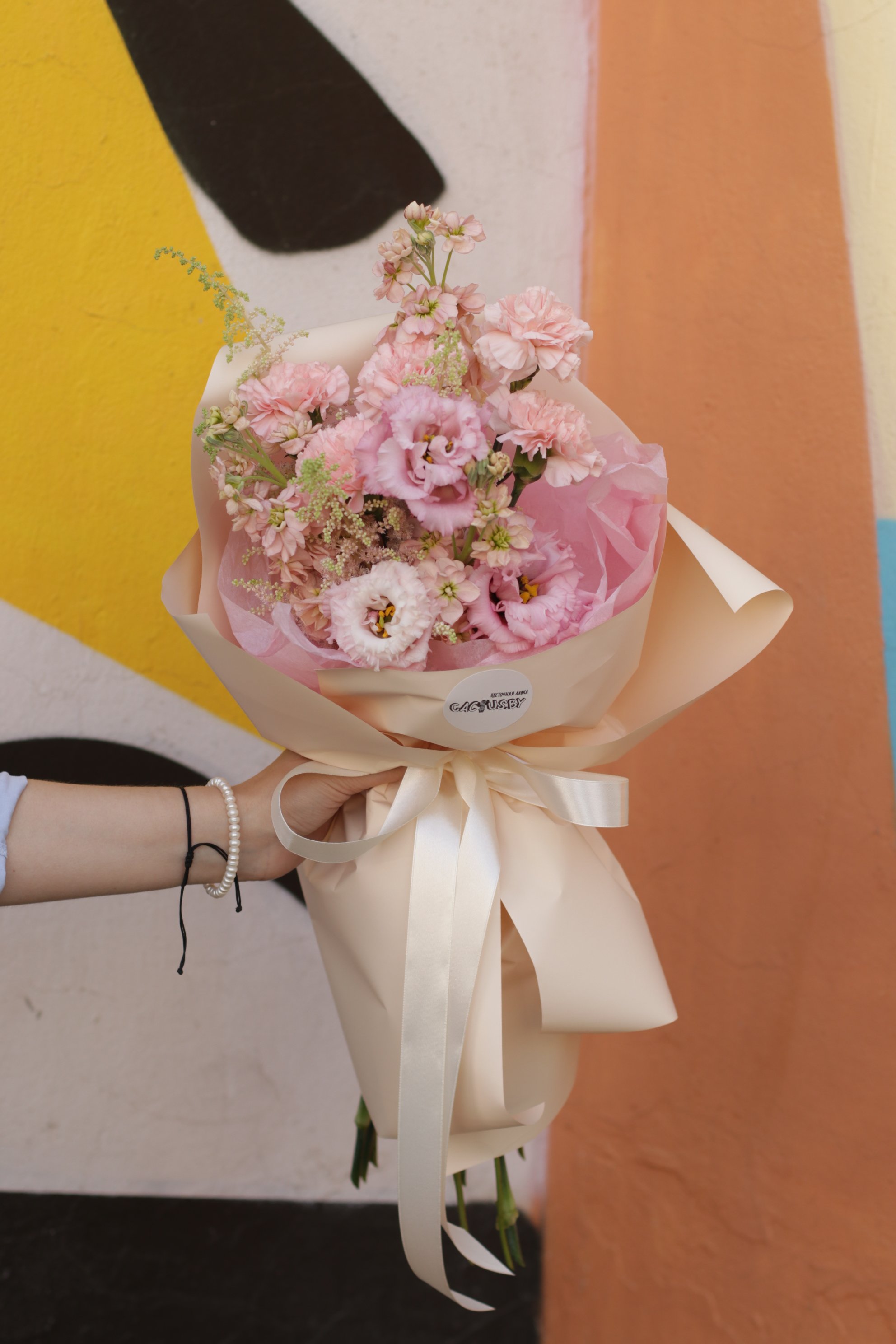 Романтичный, невесомый букет с пионовидной эустомой, летней астильбой, кружевными гвоздиками и пряной маттиолой! Еще не поздно сделать этот вечер для кого-то еще приятнее!