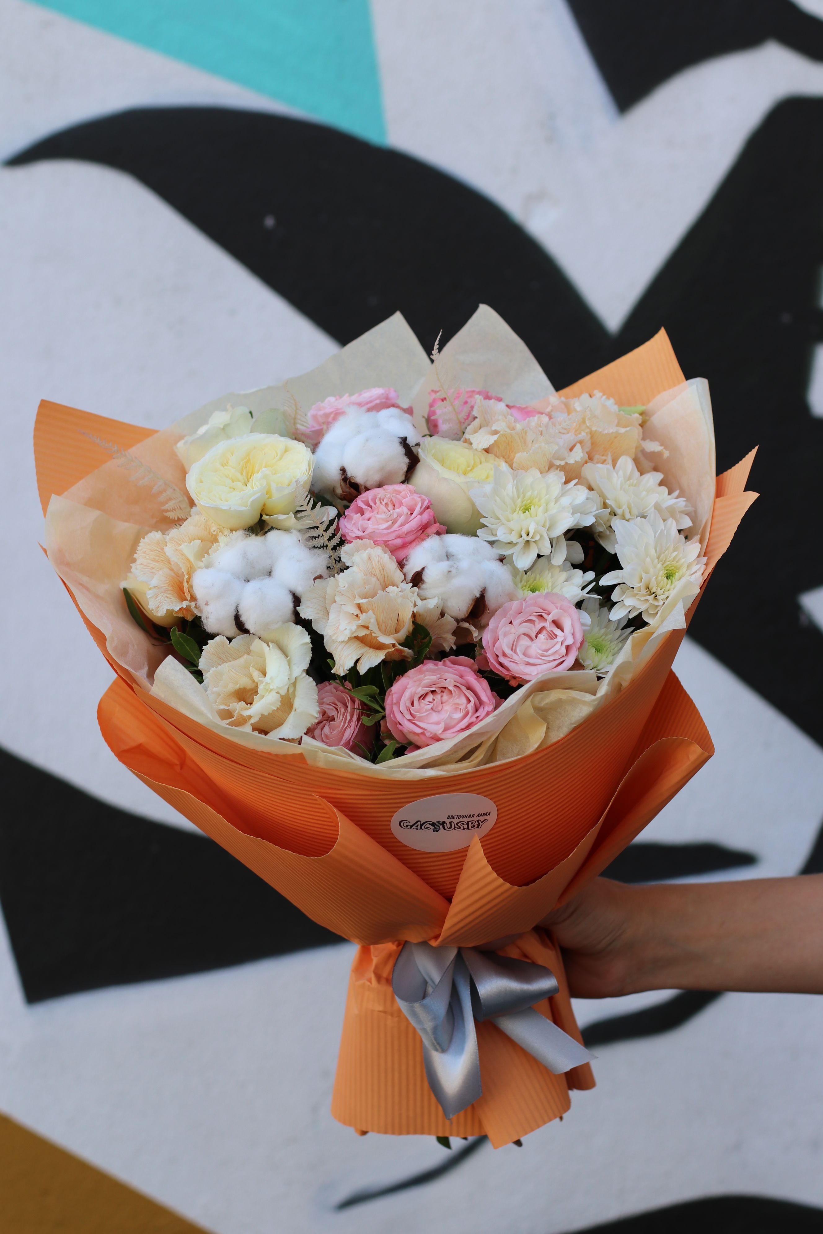 *ВНИМАНИЕ: Состав букета и наличие растений (цветов) может меняться в связи с сезонностью. Мы всегда рады предложить Вам альтернативный вариант из схожих по цвету и фактуре растений