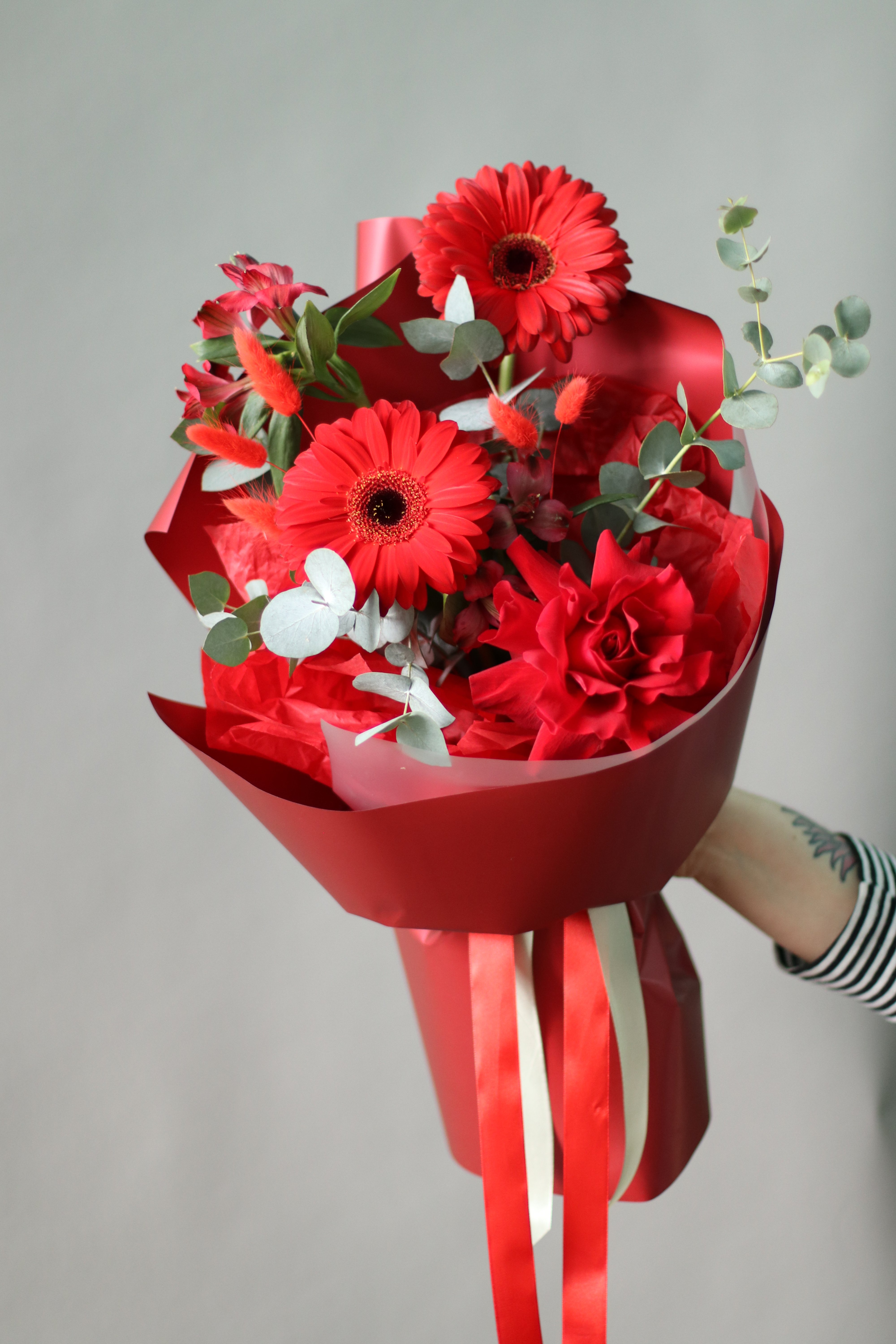 *ВНИМАНИЕ: Состав букета и наличие растений (цветов) может меняться в связи с сезонностью. Мы всегда рады предложить Вам альтернативный вариант из схожих по цвету и фактуре растений