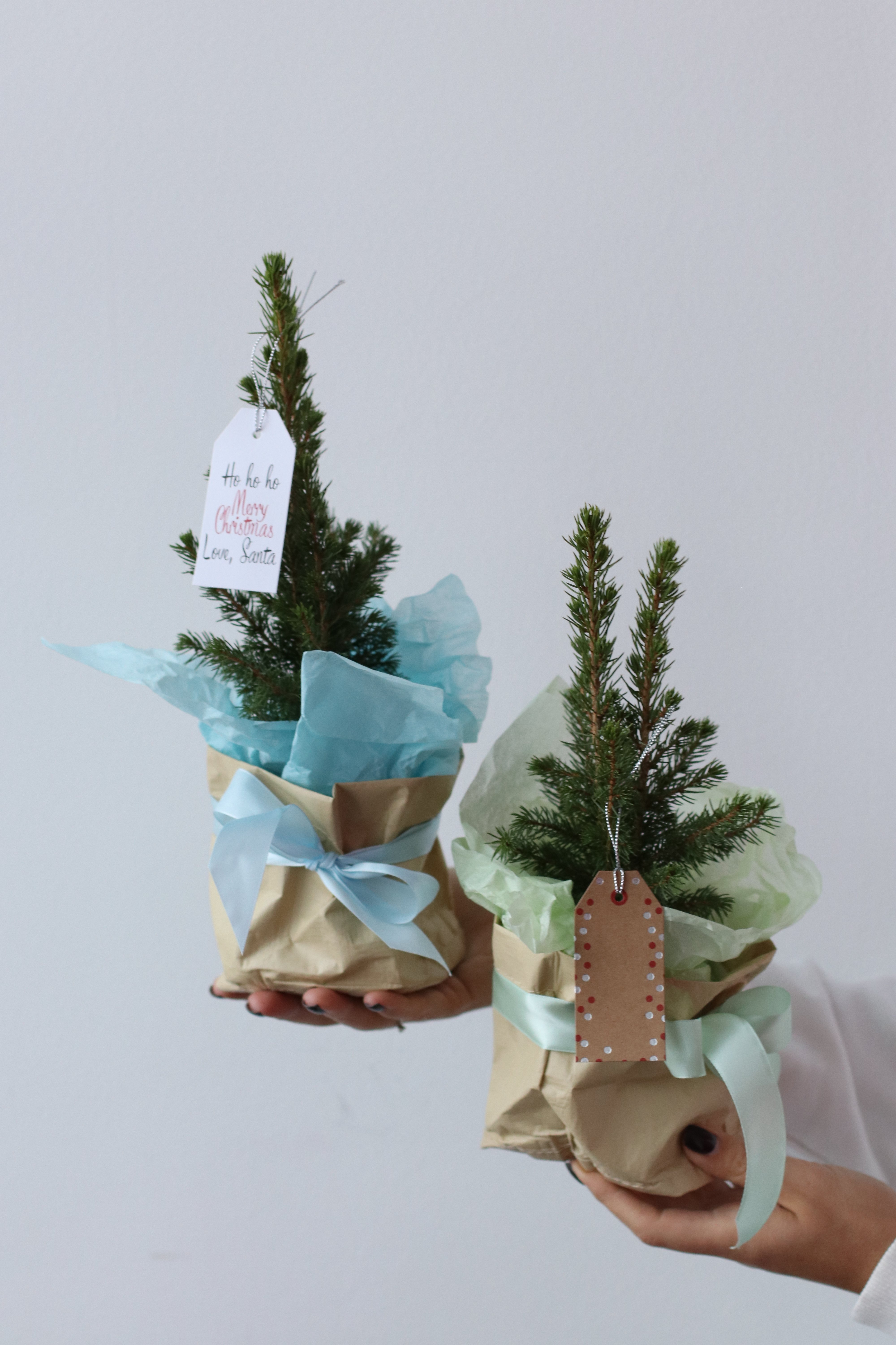 Канадская ель в комплекте с эко-мешочком, бантом и открыточкой для самых искренних пожеланий в Новом году!