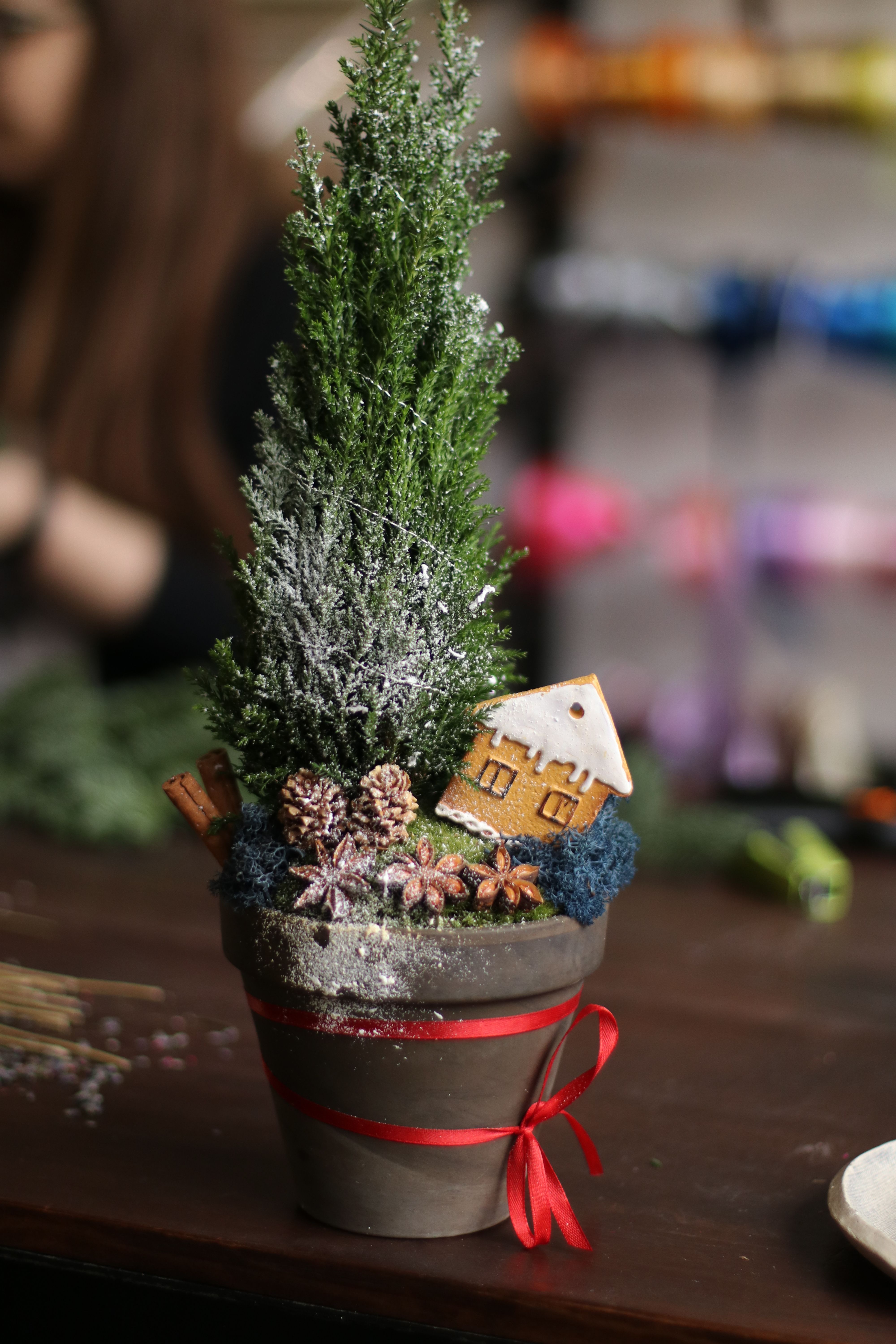 Новогодние, рождественские композиции с живым кипарисом, анисом, шишечками, мхом и "пряничным" домиком. Успейте заказать к праздникам для партнеров, коллег и близких.